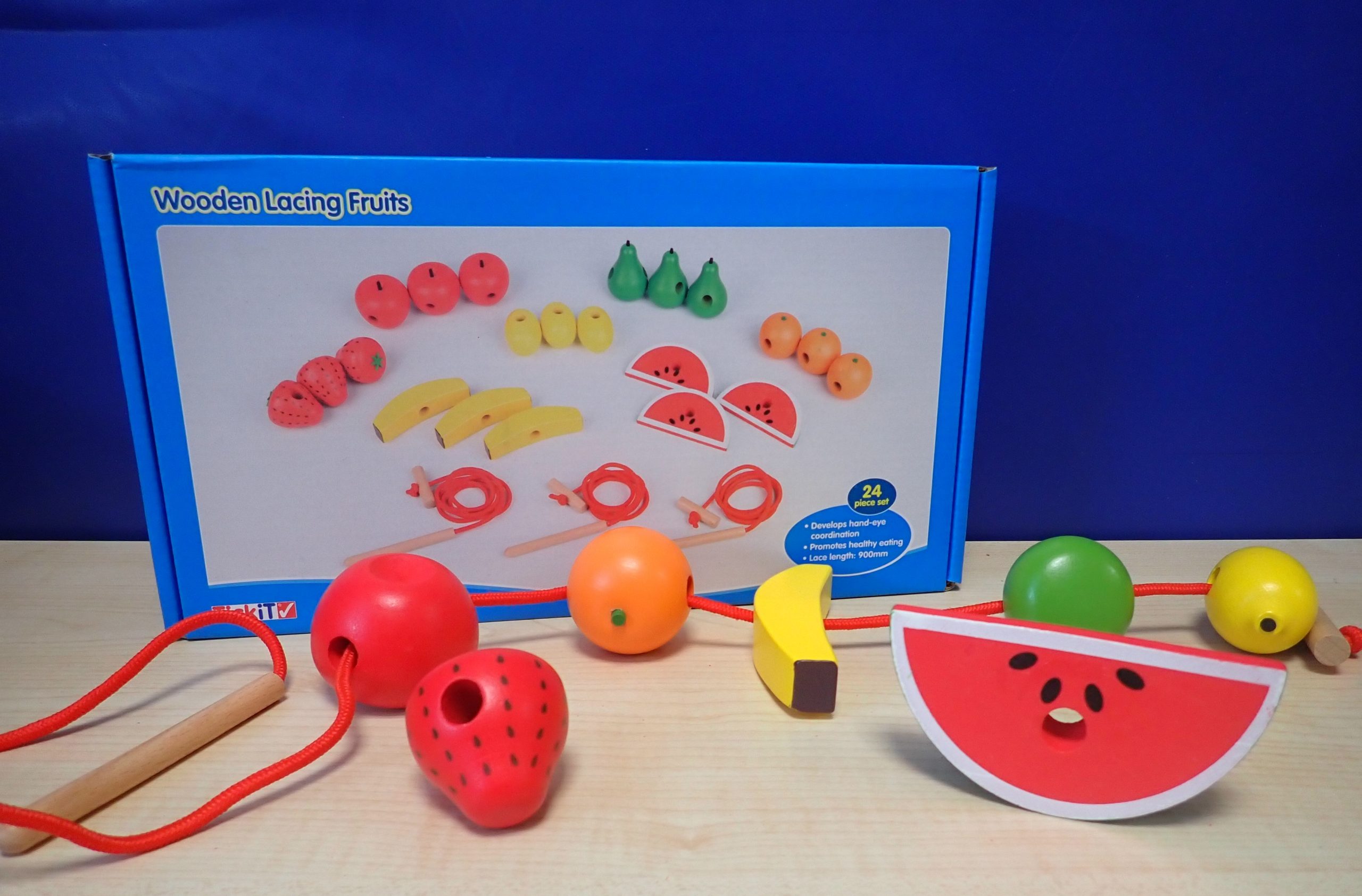 Improves fine motor skills and accurate hand movements. Can be used to support knowledge of fruits, colours and numbers.